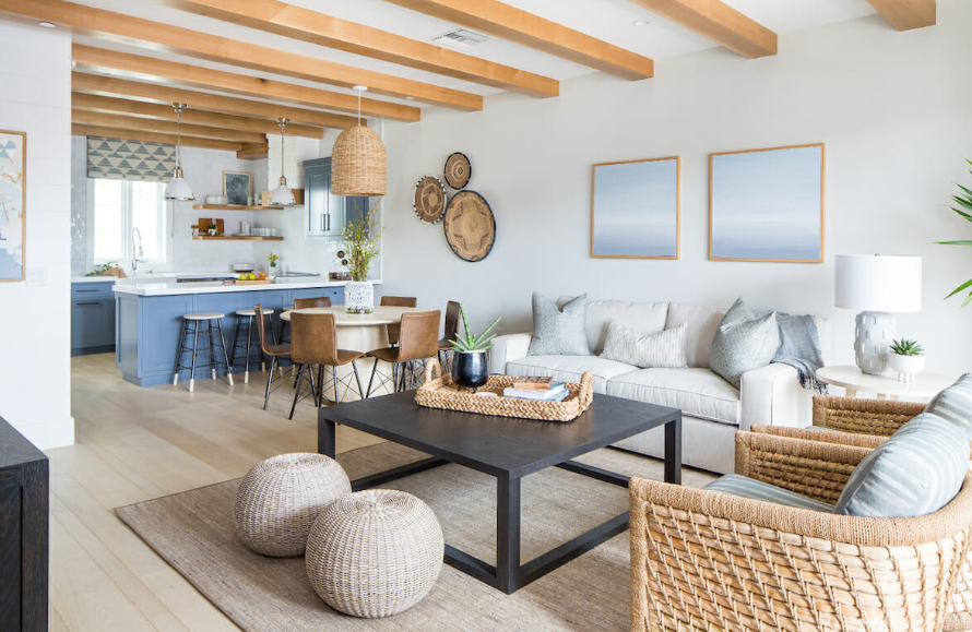 Modern coastal homes are characterized by the thoughtful use of natural materials that evoke the serene surroundings just outside. Options like white oak, rattan, and reclaimed wood offer a sense of calm while adding warmth to interiors. Shell stone tile underfoot and nubby linen slipcovers help reinforce a comfortable aesthetic that is also durable enough for active families and easy indoor-outdoor transitions. The emphasis on these organic elements fosters a strong sense of place, infusing the home with a tactile connection to its surroundings.